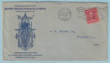 UNITED STATES ADVERTISING COVER - BERRY-WOOD PIANO PLAYER CO. KANSAS CITY - B907