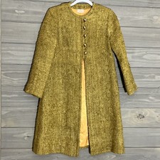Doris Chism Vintage Tweed Coat Green Gold Womens S/M 60’s Retro Mid Century