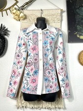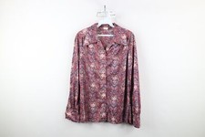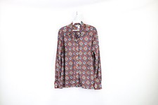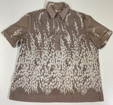 Vintage 70s Mid Century Modern MCM Womens M Tapestry Flower Knit Button Shirt