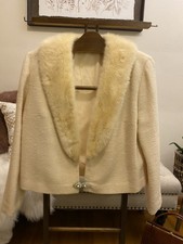 VTG MCM Hollywood Glam Ivory Jacket Real Fur Collar & Rhinestone Clasp Size M