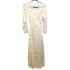 Vintage 1950s Mid Century Semi-Sheer Satin Floral Robe White Pink Flowers S/M