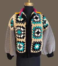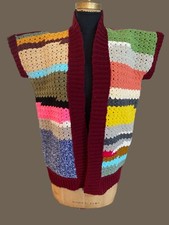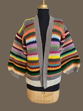 Boho Hippie Hand Knit/Crochet Open Long Sleeve Cardigan Mid Century Style Sz S/M