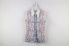 Vintage 70s Mid Century Modern MCM Womens M Sleeveless Knit Flower Button Shirt