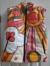 NEW Mid Century Modern Gal Floral Sunshine Pink Yellow Puffer Vest Size M