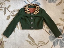 Mid-Century Green Wool Leopard Collar Short Women’s Coat Jacket Small Medium S M