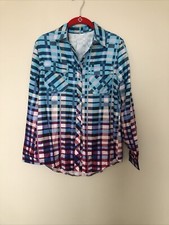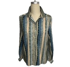 Mid -Century Vintage Contessa Monique Womens Geometric Print Button Blouse Top M
