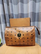 Vintage Authentic MCM Leather Shoulder Unisex Bag Brown