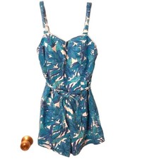 Vintage Swimsuit Mid-century Women's m medium Tropical Blue One Piece