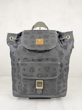 Vintage MCM Visetos Monogram Black Drawstring Nylon Backpack .