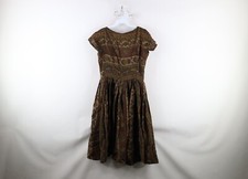 Vintage Lady Carol Dress Womens Medium Brown Geometric Flare Mod 60s Mid Century