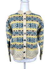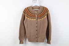 Vtg 70s Mid Century Modern MCM Womens M Wool Blend Fair Isle Cardigan Sweater