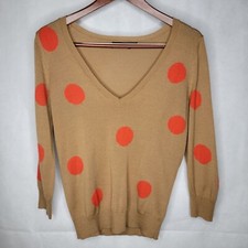 The Limited Sweater Tan Wool Blend Red Circles Retro Mid-Century Mod V-neck M