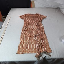 Isle Apparel Dress Size Small Red Brown Print Vintage Mid-century Modern Look M