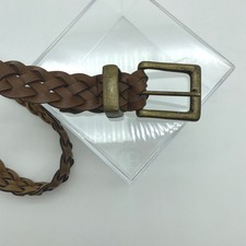 90's Brown Braided Faux Leather Belt with Antique Brass Buckle