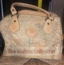 Vintage Alviero Martini Style World Globe Map Leather Handbag Purse Unbranded