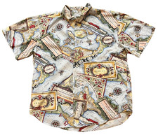 Shirt Lizwear Antique Map Print Button Down Shirt Size Large Vintage