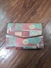 Fossil Mini Leather Wallet Coin Purse Vintage Retired European Map Travel Stamp