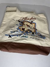Vintage Map Of Alaska & Animals - Souvenir Canvas Tote Bag NWT Reinforced Bottom
