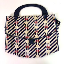 Vintage Cosmetic Tote Bag Toy Soldier Print Navy Hard Handles Retro Whimsy Purse