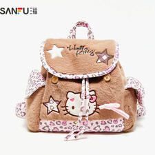 Hello Kitty Pink Leopard Backpack Fluffy Plush y2K Gal Kawaii Flap Knapsack Bag
