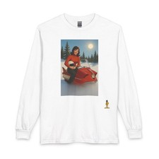 MID CENTURY MODERN BRUNETTE Red Snowmobile Long Sleeve Tee | Vintage Winter Art