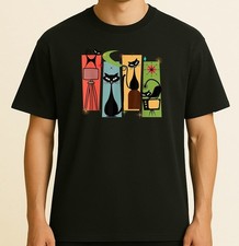 Vintage Medium Black Retro Mid-Century Modern Cats 50s 60s Style T-Shirt Size M