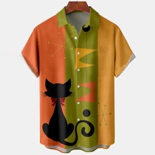 Hawaiian shirt Mid-Century Cool Car Cat Palm Springs button short sleeve shirt