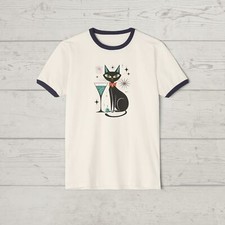 Unisex Cotton Ringer Mid Century Modern Cat Lovers Shirt, Retro Atomic Martini