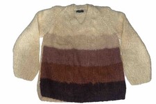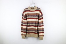 Vintage 70s Mid Century Modern MCM Mens Medium Striped Cable Knit Sweater USA