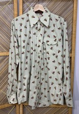 Vintage Shirt Mid Century Modern Nature Leaves 1960s Mens Medium