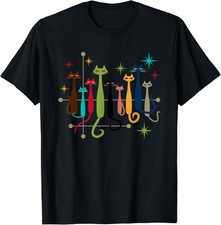 Vintage Retro Mid-Century Modern Look Cats 50s 60s Style T-Shirt Gift for Dad, M