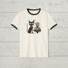 Unisex Cotton Ringer Mid Century Modern, Retro Diner Cat Lovers Shirt