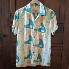 Hawalili men's sz M orange Mid Century Modern Cocktail button short sleeve shirt