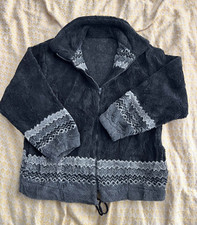 Vintage Teddy Fleece Jacket Black / Gray Winter Mountain Pattern Size Large