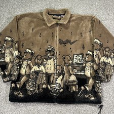 Vintage Teddy Bear Fleece All Over Print Cobblestone Canyon Size XL Made In USA