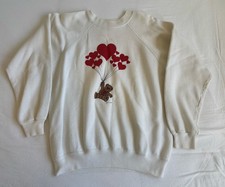Vintage 1983 Teddy Bear Heart Balloons White Crew Neck Sweatshirt Sz M