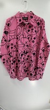 Patchwork Teddy Bear Mens XL Button Up Reason Brand Pink Anime Gothic Streetwear
