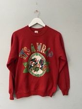 Vintage 90s Red Christmas Sweatshirt Teddy Bears Candy Canes Trees Size L