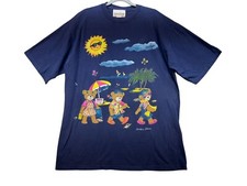 Vintage 90s Teddy Bears T Shirt Size Large Single Stitch USA Made FotL Tag Blue