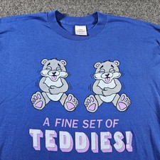 Vintage 90s Teddy Bears Shirt Single Stitch USA Anvil Tag X-Large Blue Cotton
