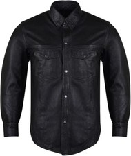 Kids Concealed Carry Black Premium Cowhide Leather Biker Motorcycle Shirt
