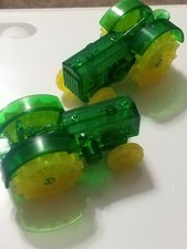 Pair of hair clips/barrettes-Vtg John Deere tractor-plastic toy-green/yellow