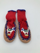 Vintage CHILDRENS SLIPPERS Crochet w/ Leather Sole HORSE TOY WHEELS Jack-in-Box