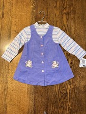Vtg Y2k Corduroy Embroidered Jumper Dress Set Teddy Bear Button Front 24 Months