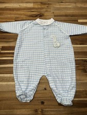 Vintage Teddy Bears Baby One Piece Sleepwear Medium Blue Gingham Giraffe Snap F…