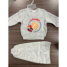 Vintage Teddy Boom Sweatshirt Pants Set Boys Size 6-9M Gray Football Bear