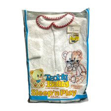 Vintage Teddy Bears Sleeper White With Bear Stitching Size Medium Snap Front.