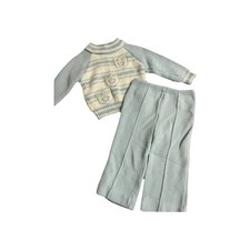 Vintage 80s/90s Knit Bear striped Outfit Sweater & Pant Set; 3-6 months