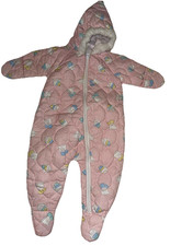 Vintage Cuddle Time Pink Infant Footed Hooded Sleeper 18 Lbs Teddy Bears Quilted