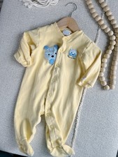 Vintage Teddy Bears Kleintots Yellow Soccer Footed Baby Romper Small Polyester